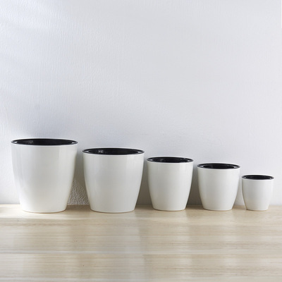 Maceta de plástico de autoriego, blanco y negro, superventas